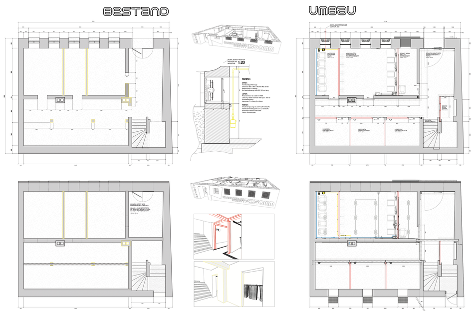DA DAS URSPRÜNGLICHE ERSCHEINUNGSBILD DEM RAUMGEFÜHL UND DER GEPLANTEN FLEXIBILITÄT NICHT FÖRDERLICH IST, HABE ICH MICH FÜR EINEN STIL ENTSCHIEDEN, DER DAS MÜNCHENBERNSDORFER STADTBILD PRÄGT UND DURCH DIE TEPPICHWEBERINDUSTRIE HIER GESCHAFFEN WURDE.